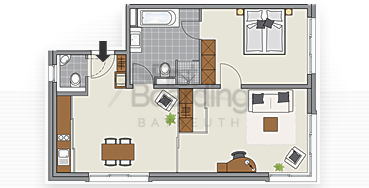 - Wohn-/ Schlafzimmer, Bad, sep. WC, Küche